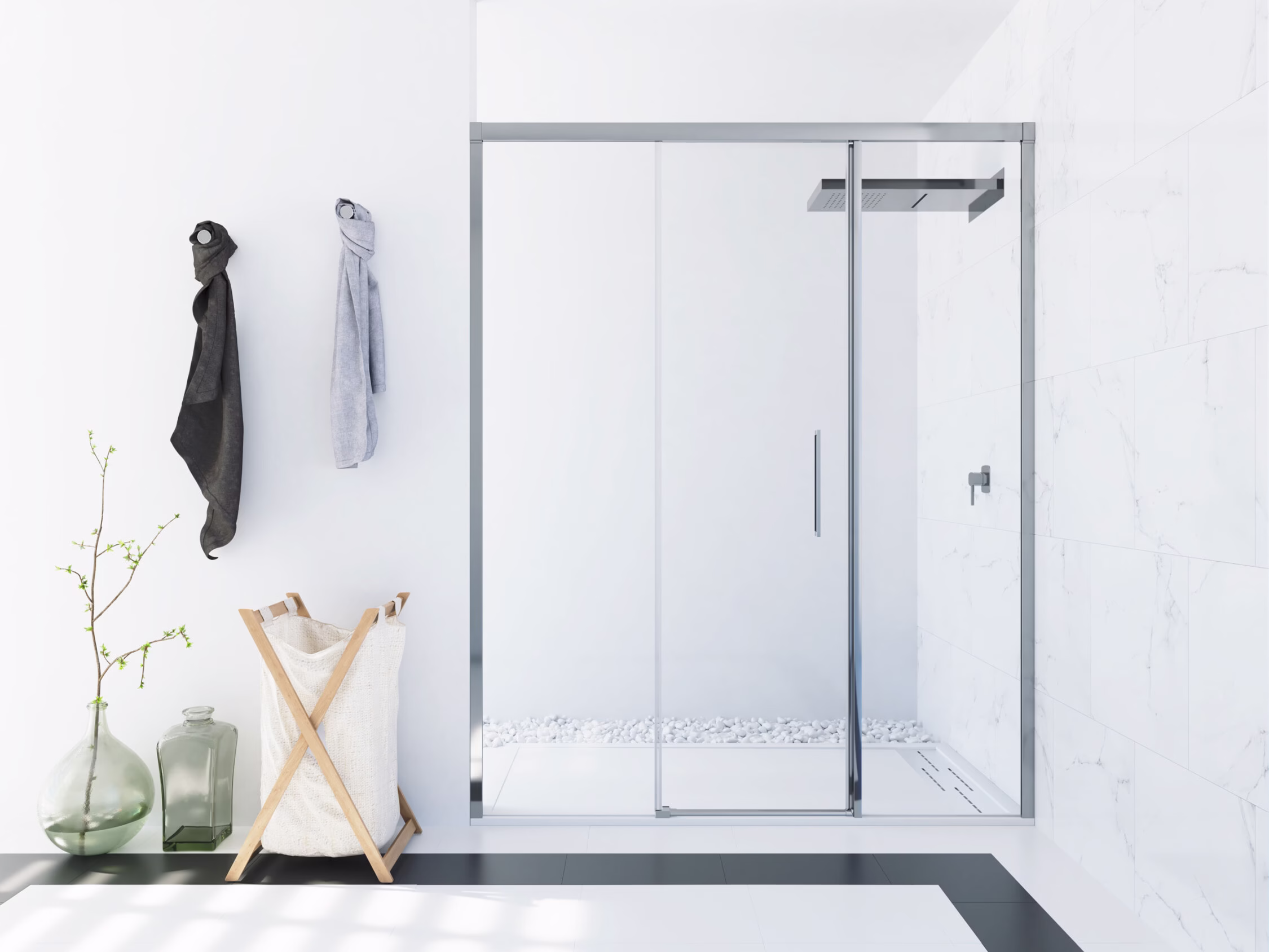Nuestra mampara frontal cuenta con 1 hoja corredera y 2 hojas fijas, ofreciendo una solución versátil para adaptarse a cualquier espacio. El cristal templado de seguridad de primera calidad garantiza una transparencia cristalina, al tiempo que proporciona una resistencia excepcional de 6 mm, asegurando una experiencia de ducha segura y lujosa.