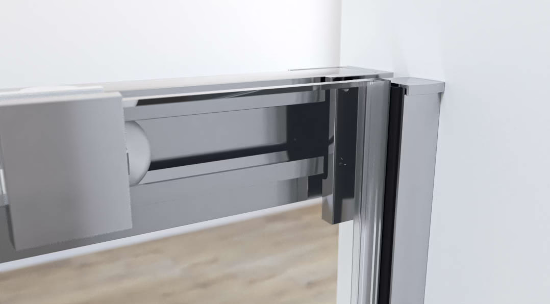 • Guía superior suspendida ampliada y reforzada con alta sección. -Mampara sin perfil guía inferior.