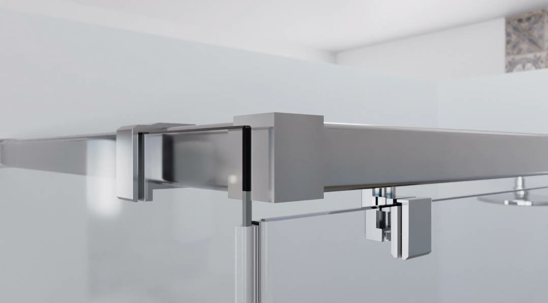 – Accesorios Cromados de Alta Gama: Con pinza guía inferior desplazada, vasos soportes para la guía superior, doble asa de 300 mm de diseño exclusivo y pinzas superiores en fijo, cada detalle de nuestra mampara corredera está diseñado para ofrecerte un acabado impecable y funcionalidad superior.