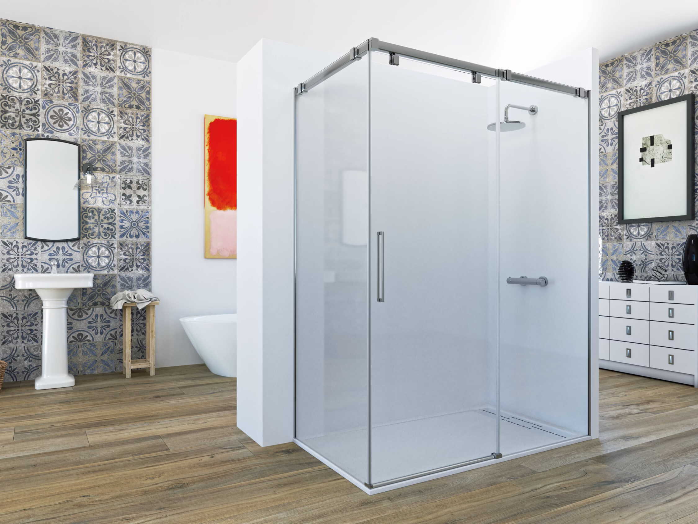 Mampara Ducha Esquina – 1 Hoja Corredera + 2 Fijas